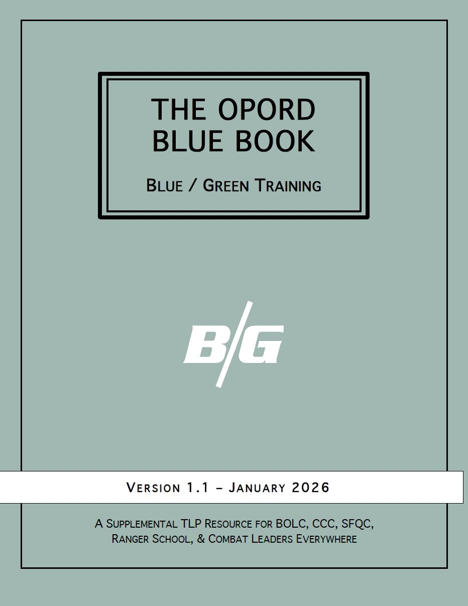Some lieutenants fumble through their first OPORDs for six months. Some sound fluent from day one. The OPORD Blue Book is the reference that separates them. Written by officers for officers. Carried from BOLC through company command. The single tool that will make you fluent in OPORDs, TLPs, and platoon-level planning.
